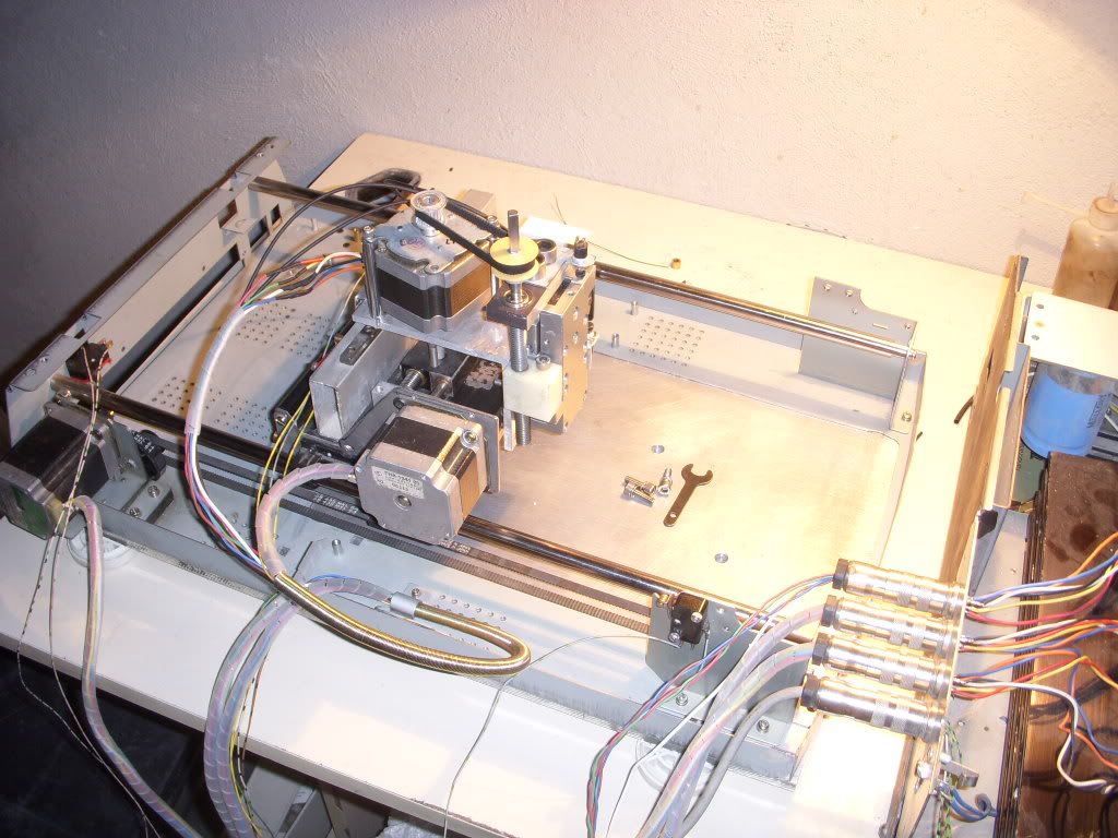 Estoy armando una garbadora para hacer prototipos de placas impresas u otras cosas. Lo que hize fue conseguir un scanner de cama plana antiguito, que tenga las guias lineales de ambos lados. Un Agfa en el piojo resulto excelente adquisision.